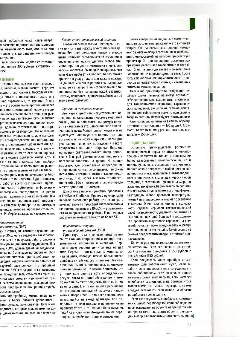 Если покупатель хочет приобрести све­тильник для собственных нужд, если он заботится о здоровье своих сотрудников и своём собственном, если он желает полно­го соответствия всем нормам, если намерен приобрести светильник и не бояться, что в любой момент он может перегореть, то ему следует остановить свой выбор на образце российского производства.