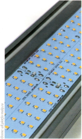 С помощью поверхностного монтажа светодиоды припаиваются к платам, так называемым светодиодным модулям или светодиод (привычные нам зеленые или окрашенные в другой цвет пластины), либо из алюминия. У текстолита по сравнению с алюминием теплоотвод хуже - об этом параметре и его значении  мы уже говорили. По той же причине модули должны иметь плотный контакт с корпусом.